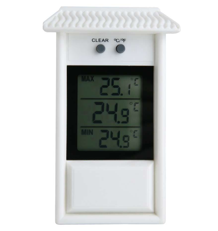 Outdoor window thermometer, digital display, maximum and minimum temperature memory function, with hook hole, can be hung on a window or wall, waterproof thermometer, can be placed outdoors directly.