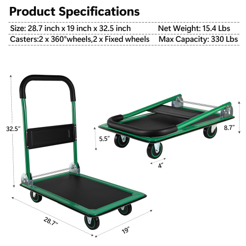 Easy to fold: Our platform carts can be folded and unfolded easily and quickly for convenient and space-saving storage or easy to transport.